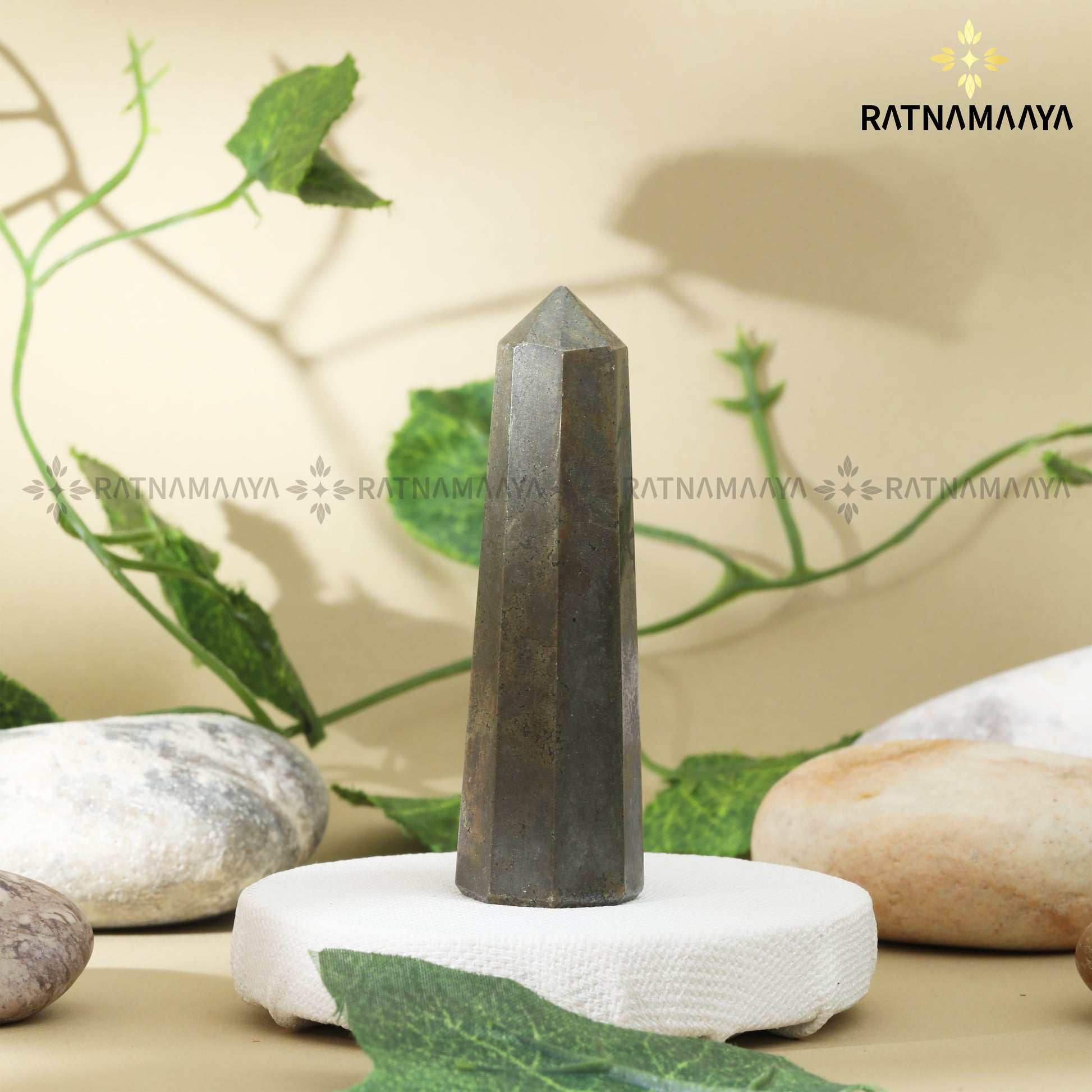 The Pyrite Pencil is a polished crystal tower in metallic gold‑bronze tones, carved with clean facets and a pointed tip that stands out beautifully on any desk, altar, or cash counter. Often called “Fool’s Gold”, this piece doubles as a bold décor accent and a powerful energetic tool for wealth, protection, and confidence work.