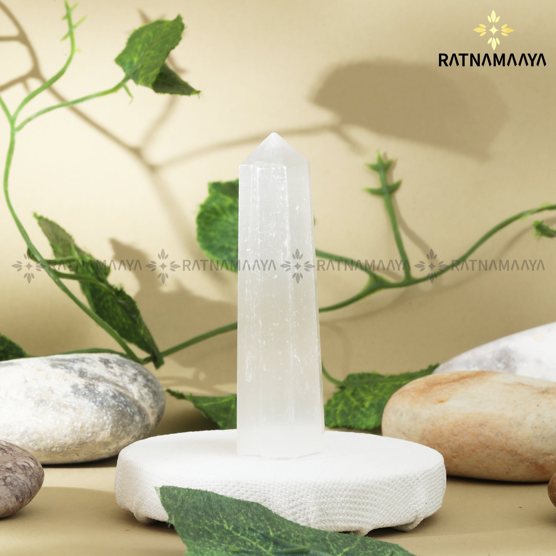 Selenite is known as a crystal of pure light and clarity, carrying a high‑vibration energy that quickly clears stagnant or negative frequencies from people, spaces, and stones. It is believed to bring deep peace, mental clarity, and a sense of angelic protection, creating a calm, uplifting atmosphere wherever it is placed.